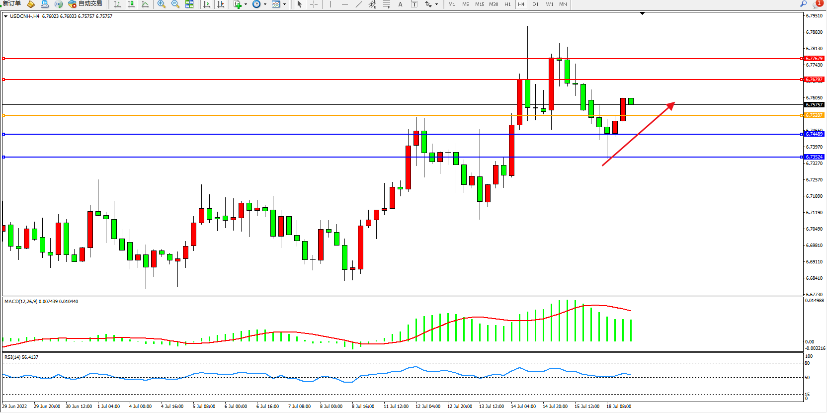 交易策略:6.75287上方看涨,目标6.75797、6.77679
