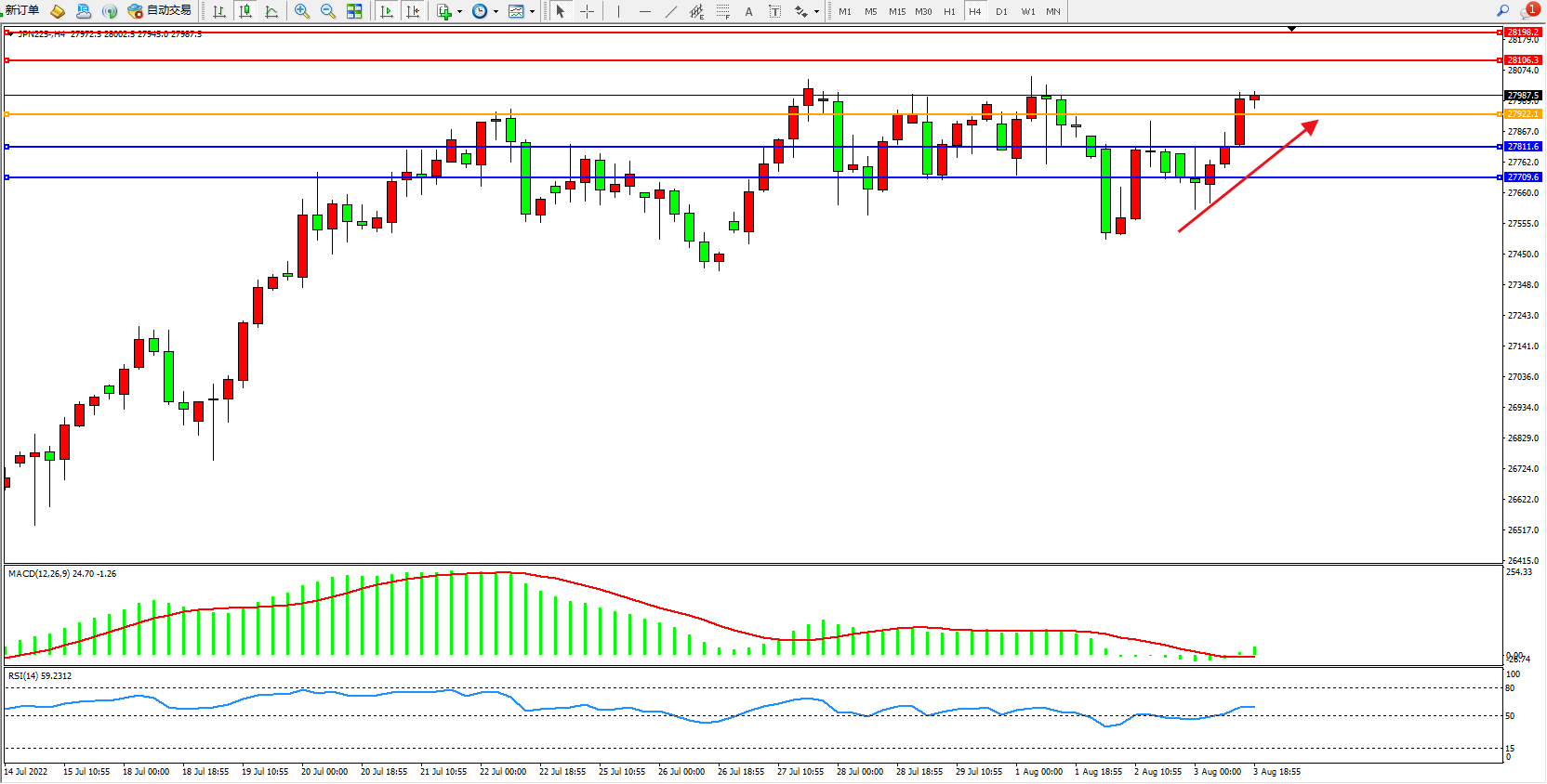 日经225指数8月3日(周三)收盘上涨142.77点,涨幅0.52%,报27737.50点。据日本广播协会(NHK)报道,继上月日本参议院选举后,第209次临时国会于今天召开。自民党尾辻秀久当选为参议院议长,立宪民主党长滨博行当选为副议长。此次临时国会为期三天,将于5日结束。
