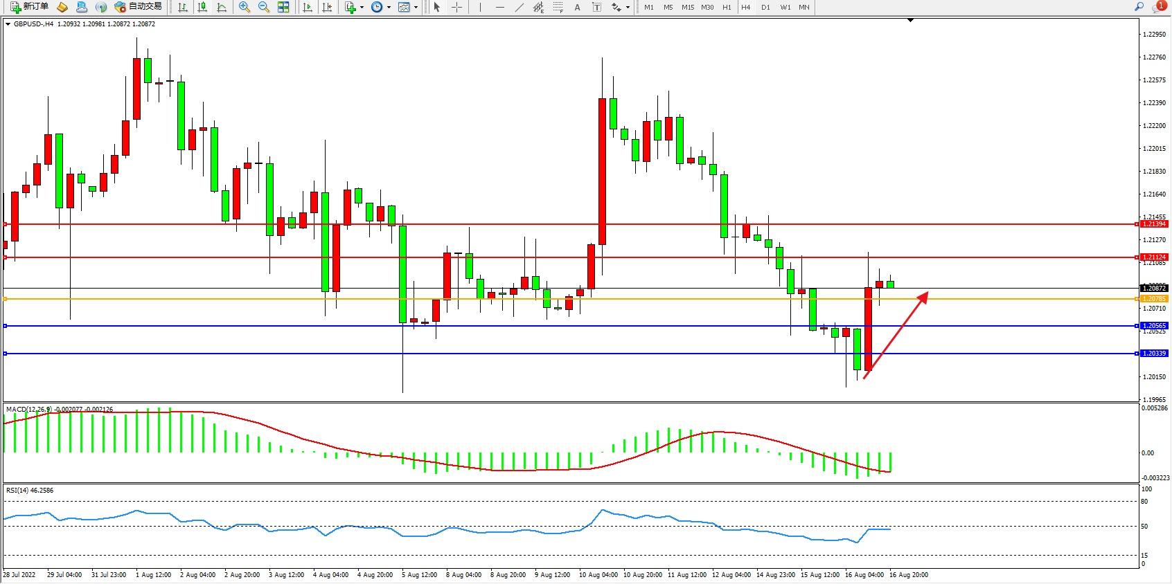 备选策略:1.20785下方看跌,目标1.20565、1.20339