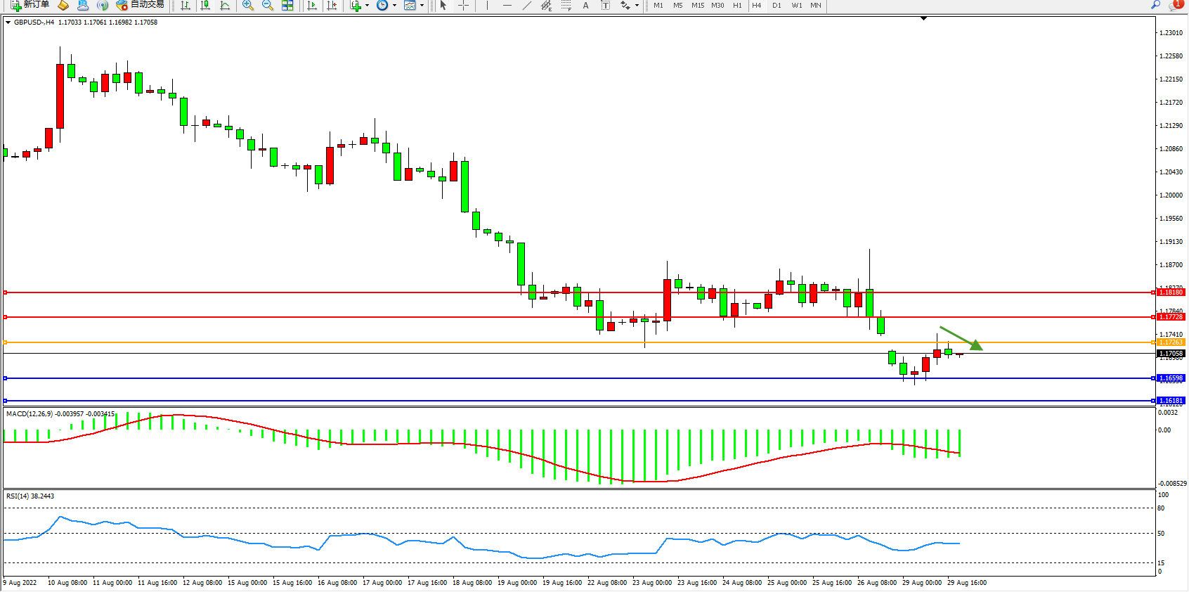 交易策略:1.17263下方看跌,目标1.16598、1.16181