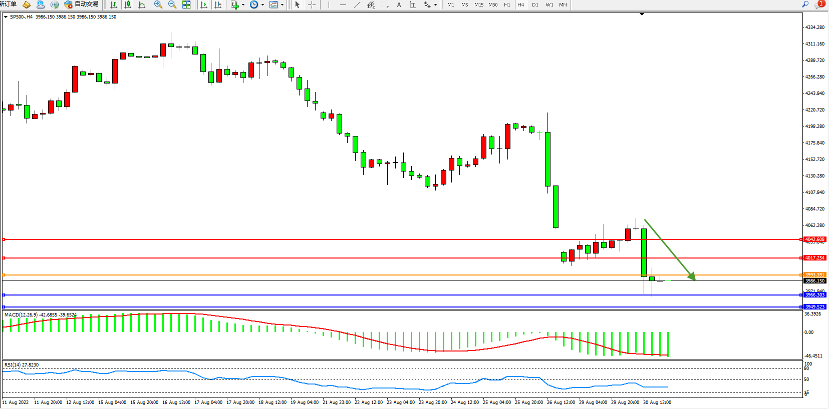标普500指数8月30日(周二)收盘下跌43.69点,跌幅1.08%,报3986.92点;美国8月份谘商会消费者信心指数高于预期,达到今年5月份以来的最高水平,为四个月来首次上升。这表明在油价下跌的背景下,美国人对经济越来越乐观。