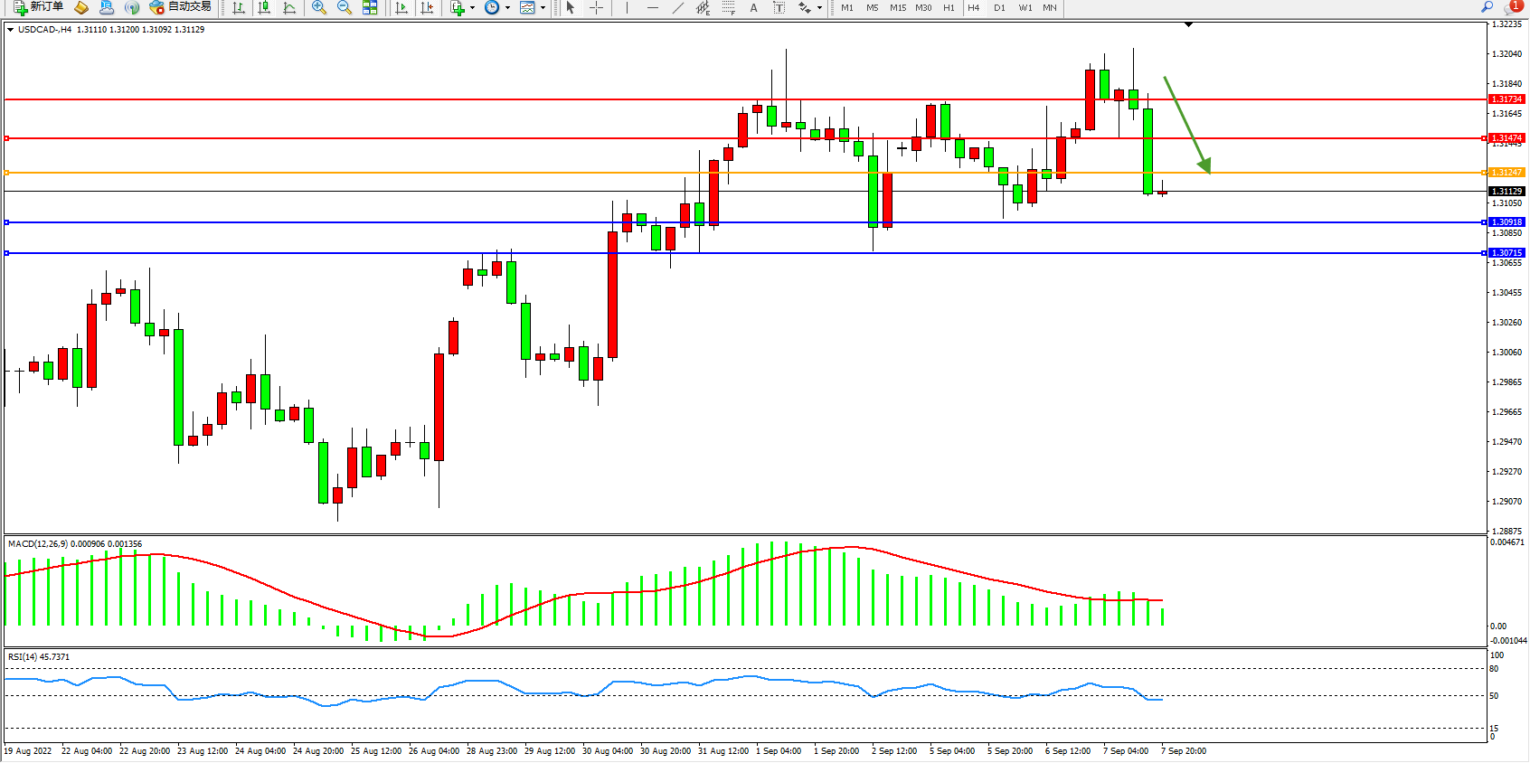 美元兑加元维持1.31129附近震荡,加拿大央行加息75个基点至3.25%,符合市场预期,利率水平为2008年3月以来最高