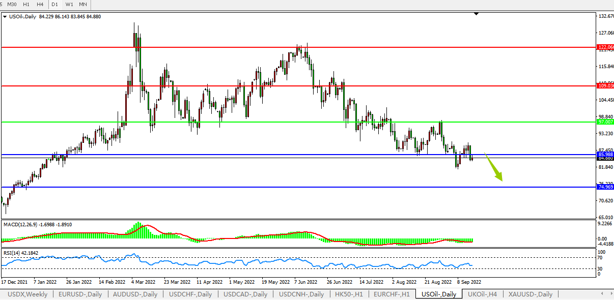 日线图看:油价反复争夺整体偏强, MACD量能柱0轴下方小幅缩量,RSI指标快速小幅走强,短期价格或有反复,但中期依旧不容乐观。
