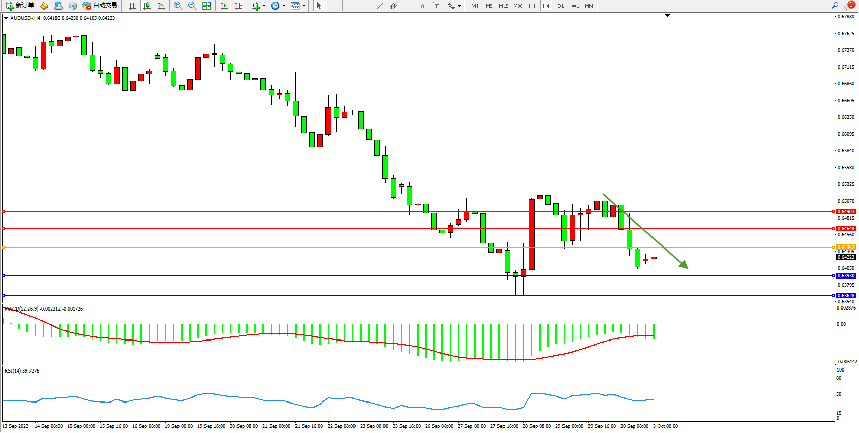 交易策略:0.64362下方看跌,目标0.63930、0.63628