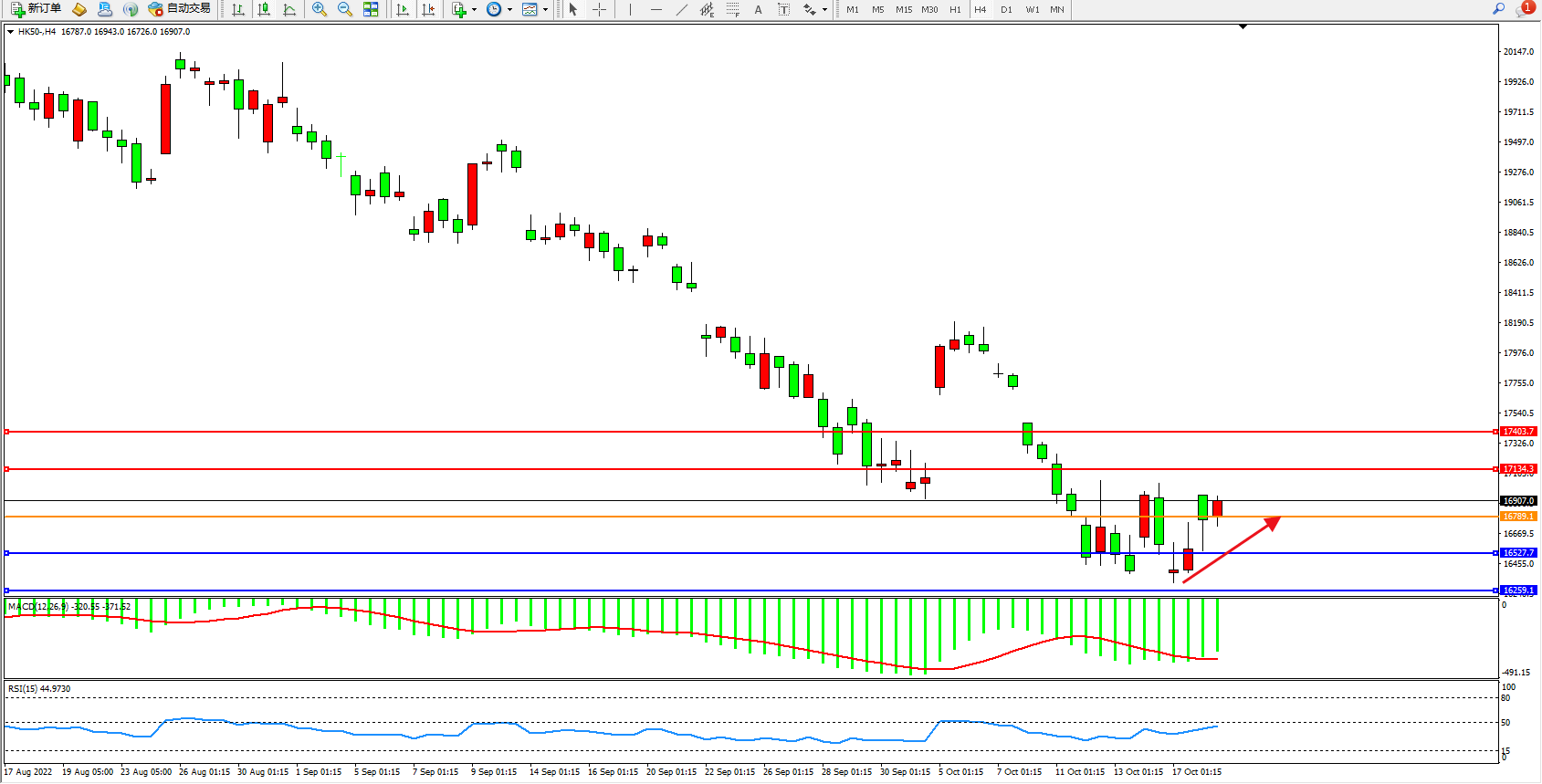 香港恒生指数10月18日(周二)收盘上涨301.68点,涨幅1.82%,报16914.58点;港股三大指数尾盘涨幅扩大,恒生科技指数领衔反弹,大幅收涨4.25%,恒指、国指分别涨1.82%和2.18%。大型科技股依旧是助推市场上涨的主力,快手涨超5%,小米涨4.7%,京东、阿里巴巴、网易、百度均涨超3%,腾讯涨2.9%;香港特别行政区行政长官李家超将于周三(10月19日)上午11时在立法会发表施政报告。李家超表示,他将于任内首份施政报告提出发展经济、改善民生的政策和措施。