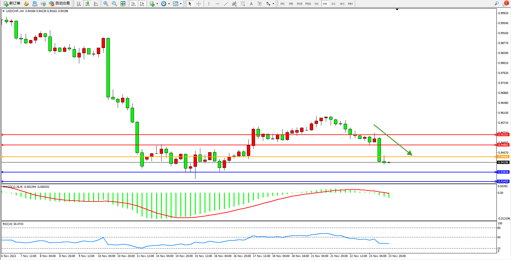 美元兑瑞郎维持0.94193附近震荡,联邦基金期货目前预计美联储12月会议至少加息50个基点,但连续第五次加息75个基点的可能性不到25%。