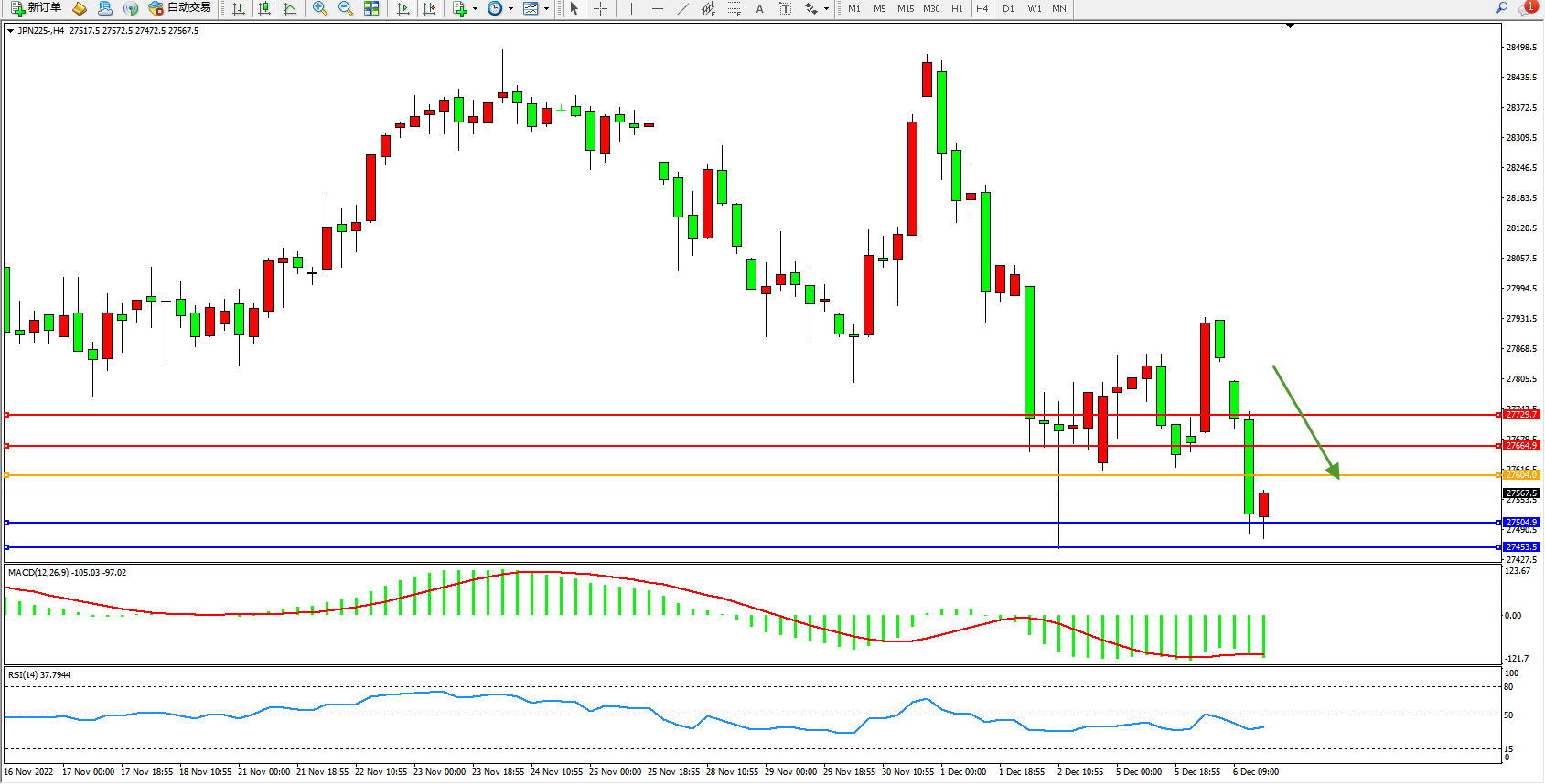 日经225指数12月6日(周二)收盘上涨82.60点,涨幅0.30%,报27903.00点。日本央行行长黑田东彦:当稳定物价的目标达到时,我们将考虑退出(当前的政策)。即使工资上涨3%,除非通胀率达到2%,否则日本央行将继续实施现行的宽松政策。