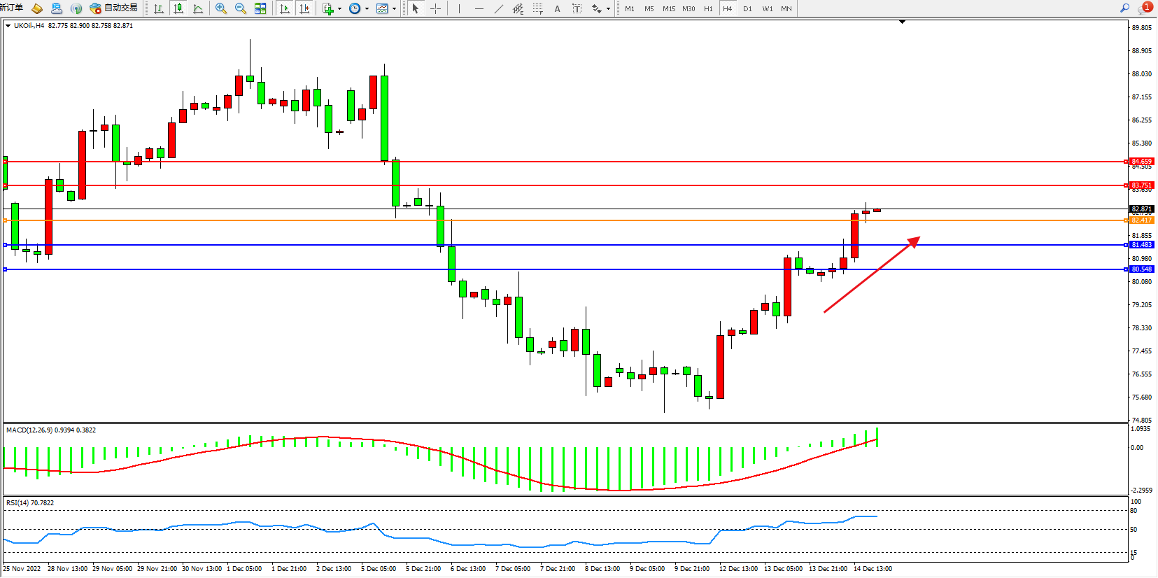4小时图看:多头动力维持震荡不断上移,市场看涨情绪依旧,短期有进一步向上拉升态势,MACD指标处于多头区域缓慢上扬,RSI指标处于多头区域高位徘徊;