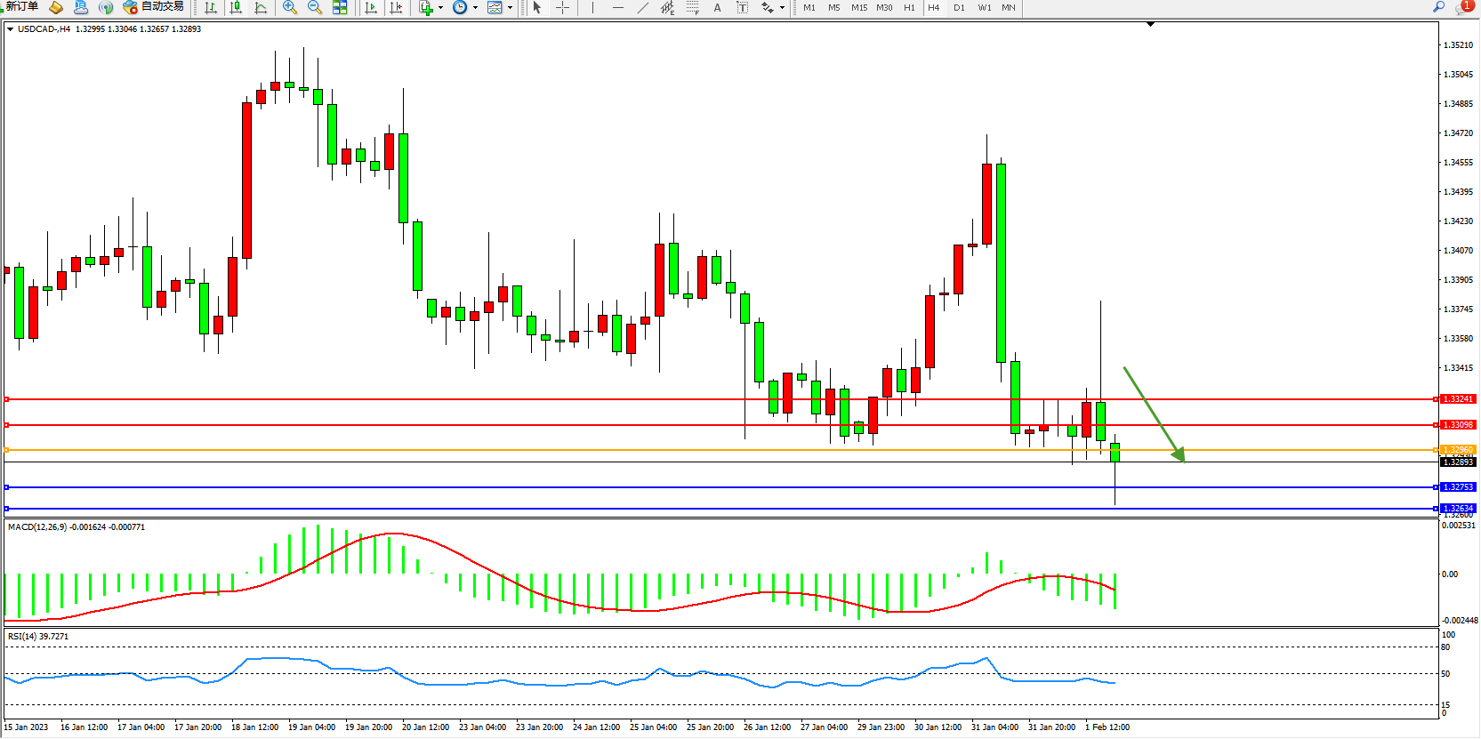 交易策略:1.32960下方看跌,目标1.32753、1.32634