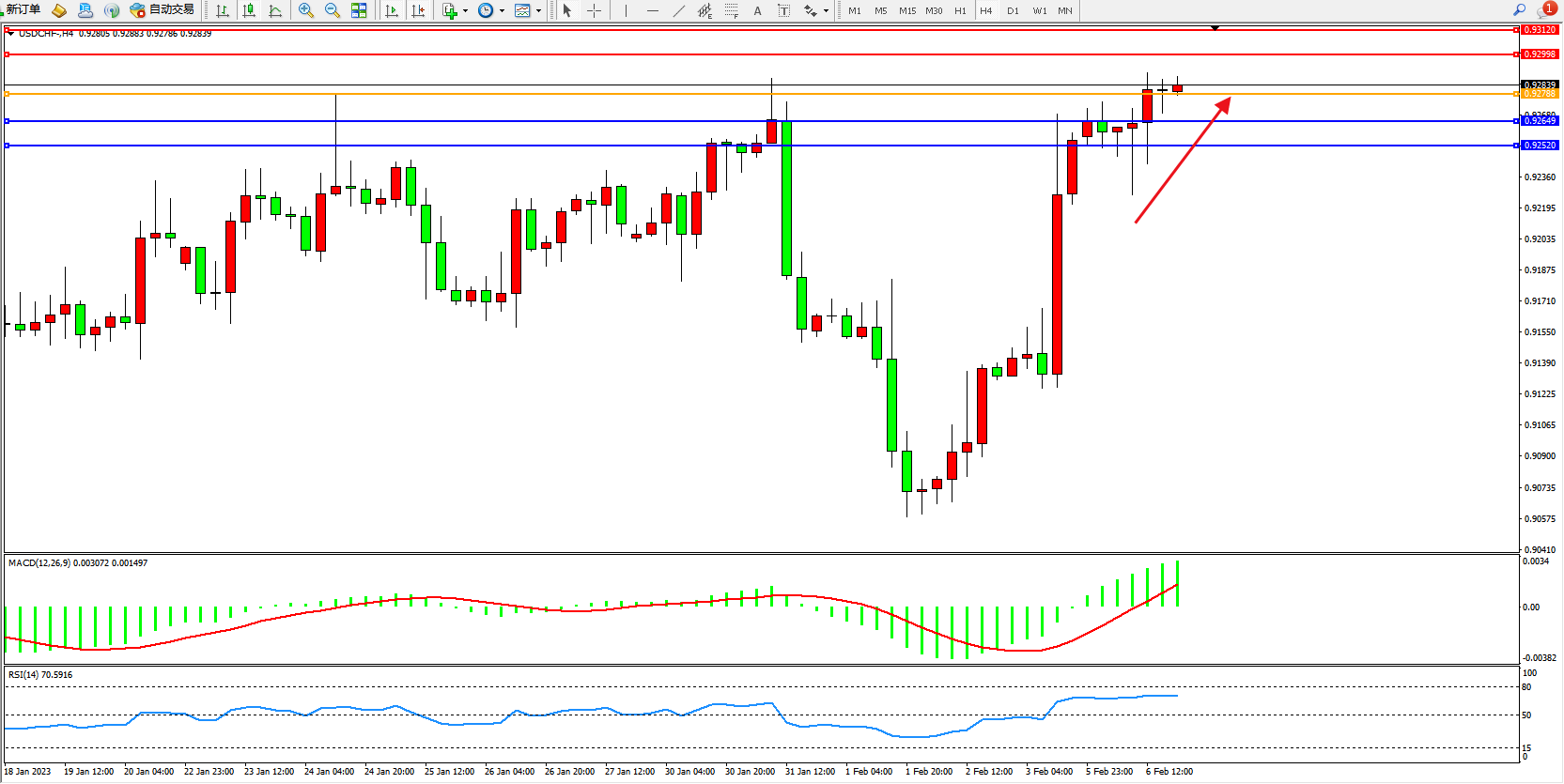 美元兑瑞郎维持0.92839附近震荡,瑞郎对令人震惊的就业数据的反应表明,如果劳动力市场保持强劲,美联储将被迫维持其激进货币政策的时间超过预期。