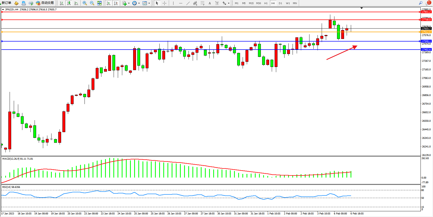 日经225指数2月6日(周一)收盘上涨159.90点,涨幅0.58%,报27671.50点。由于市场预期日本央行将继续像黑田东彦掌权下那样支持经济增长,日本国债收益率继续受到日本央行收益率曲线控制的限制,因此两者看起来都将走高。