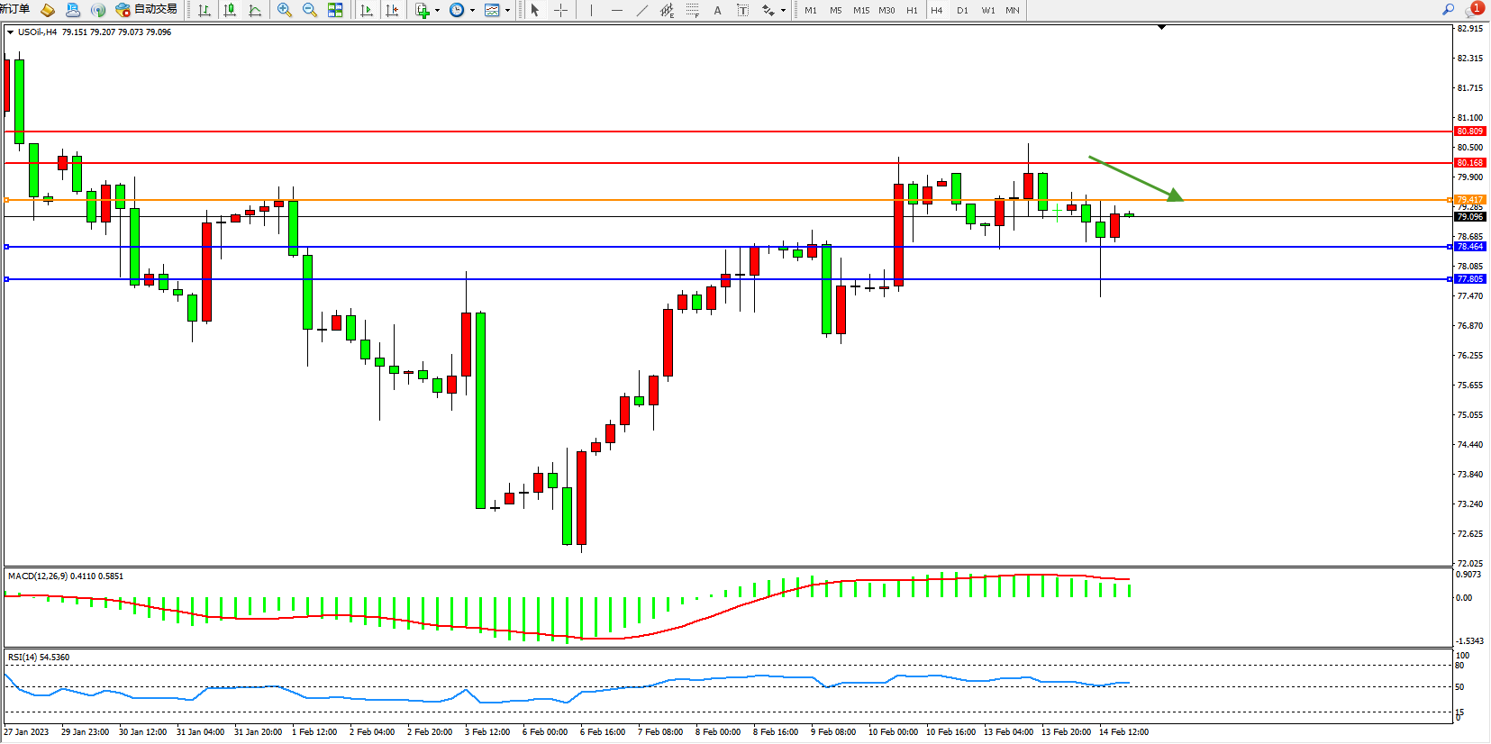 原油维持79.096附近震荡,欧佩克月报:将俄罗斯2023年石油产量预测从1018万桶/日下调至1013万桶/日。2023年全球原油需求增速预测为230万桶/日(此前预计为222万桶/日)。2023年全球经济增长预测为2.6%(此前预测为2.5%)。