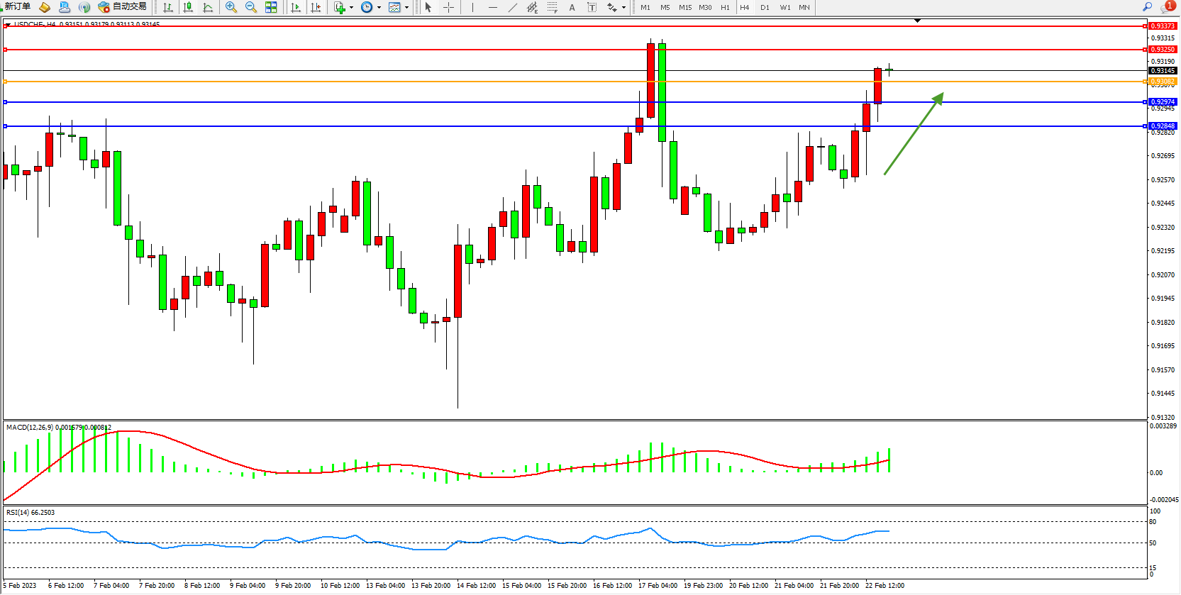 4小时图看:多头动力持续震荡拉升,短期看涨情绪笼罩,即将突破前期高位节点,MACD指标处于多头区域缓慢上行,RSI指标处于多头区域持续上移;