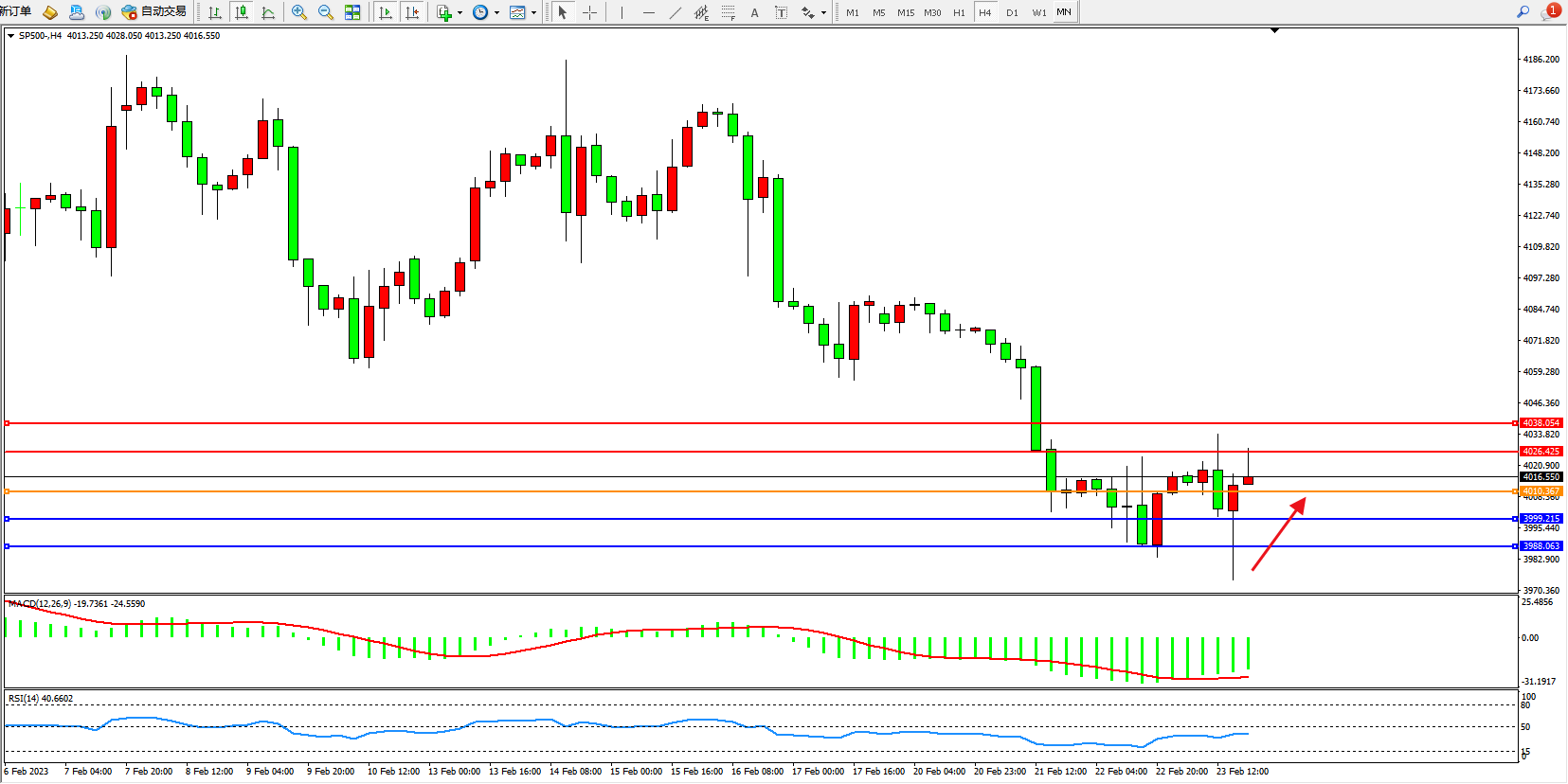 标普500指数2月23日(周四)收盘上涨21.75点,涨幅0.54%,报4012.80点;美国至2月18日当周初请失业金人数 19.2万人,预期20万人,前值19.4万人,为2023年1月28日当周以来新低。