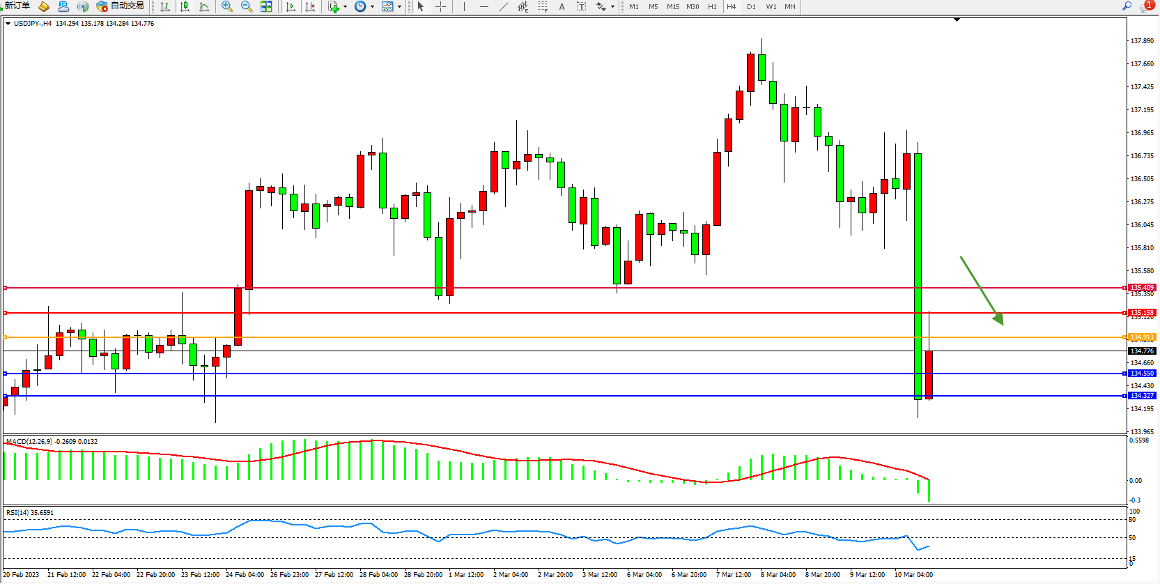 美元兑日圆维持134.776附近震荡,日本央行维持原有政策不变,日元走低,植田和男将在一个月后接任日本央行行长,(维持政策不变)这一举措可能无助于抑制外界对日本央行未来政策调整的猜测。