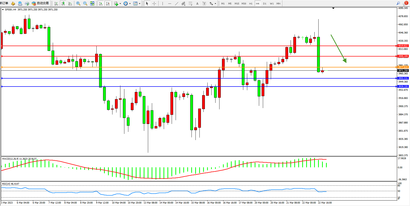 标普500指数3月22日(周三)收盘下跌66.30点,跌幅1.66%,报3936.57点;银行业危机方面,美联储认为,最近的发展将导致信贷环境趋紧。美国银行业稳健、有弹性,但一些事件将拖累经济增长。