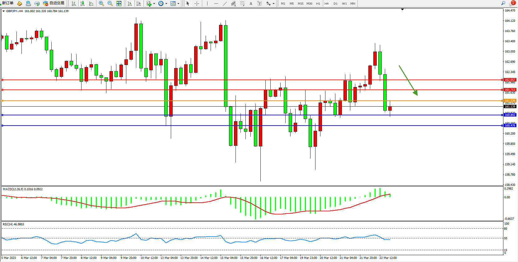英镑兑日圆维持161.139附近震荡,英国CPI指数在连续三个月下跌之后出现了上涨,预期通胀趋缓加上金融市场这两周的不稳定,这意味着人们曾预期英国央行将在周四的会议上暂停加息。