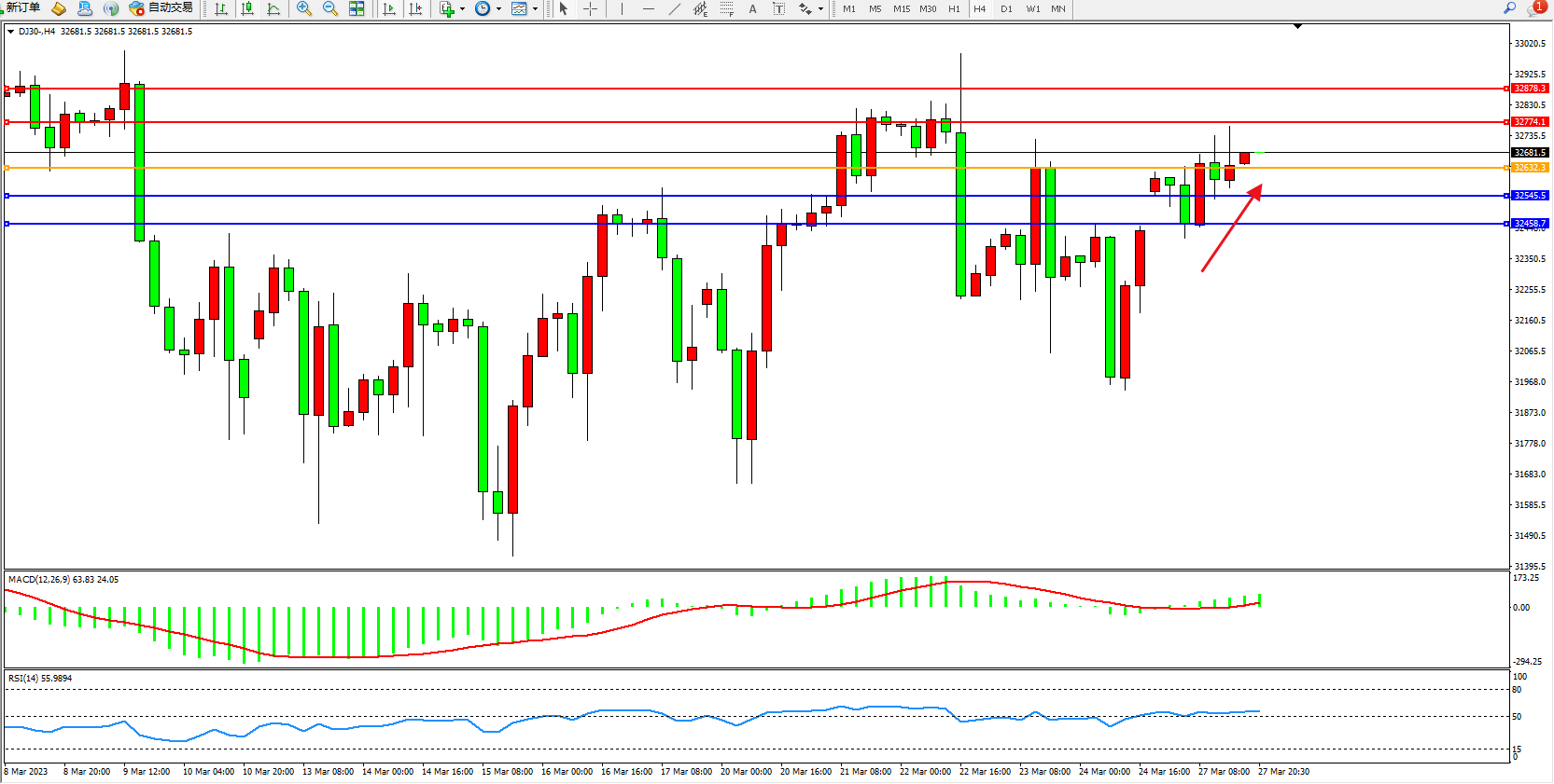 道琼斯指数3月27日(周一)收盘上涨195.08点,涨幅0.61%,报32432.61点;鉴于股票避险资金再平衡可能在本周晚些时候出现,市场可能仍会受到短期不确定性影响。虽然短期避险需求导致资金流向改变,但美元的长期前景仍然受到利差收窄的挑战。