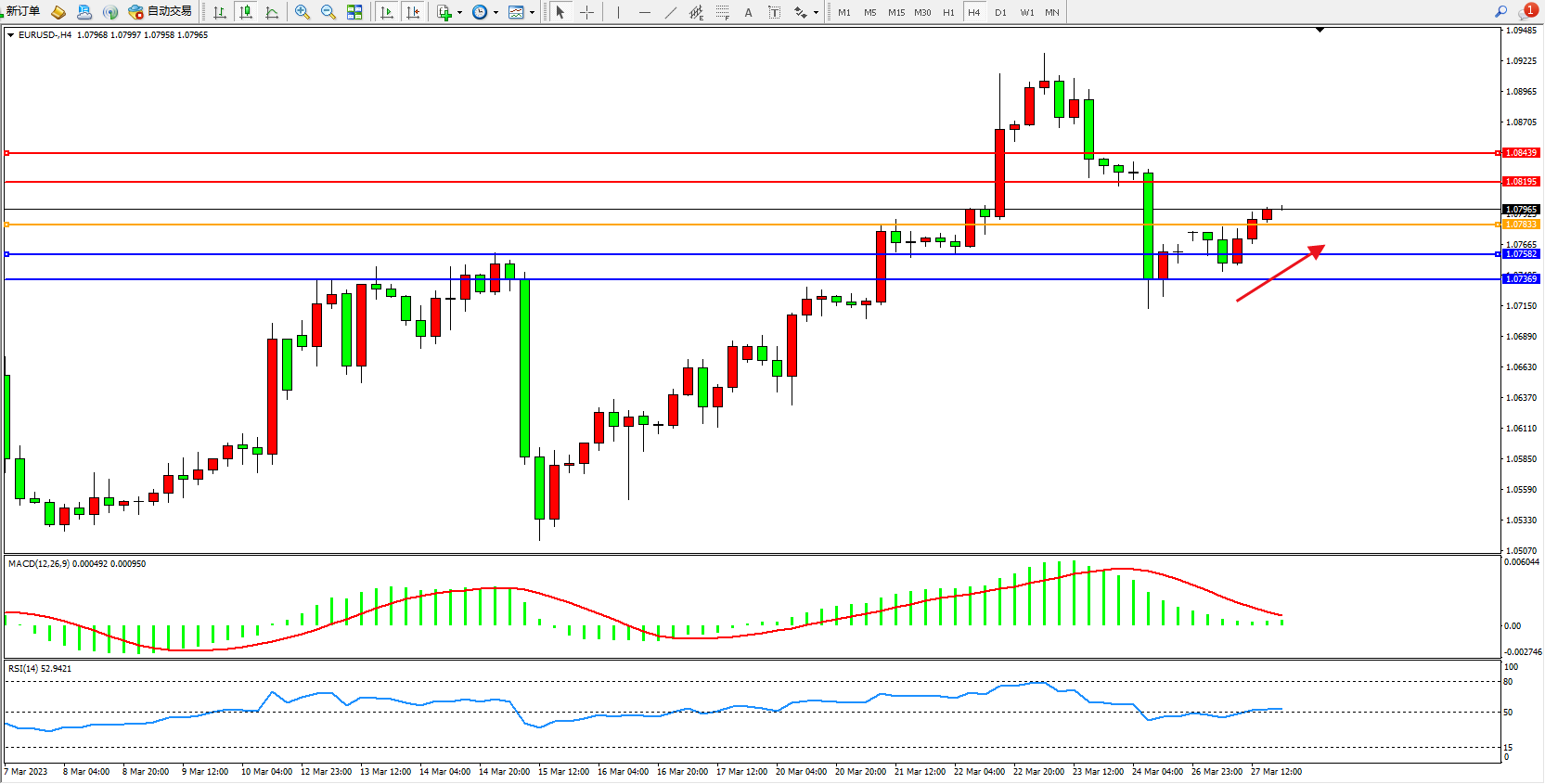 欧元兑美元维持1.07965附近震荡,欧元区银行已为不利情况做好充分准备。在银行业不确定性(增加)的背景下,决策必须谨慎。未来的货币政策决定将取决于各种风险来源(包括最近金融市场出现的风险)如何具体化,近期动荡表明银行需要谨慎。欧洲央行的决策将取决于三个因素,包括新的经济和金融数据以及核心通胀。