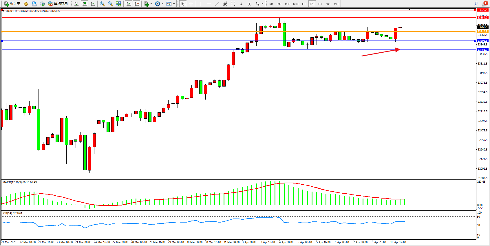 道琼斯指数4月10日(周一)收盘上涨100.64点,涨幅0.30%,报33585.93点;市场参与者似乎相信,美联储将在今年下半年降息,而近期美国宏观经济数据助长了这种预期,这些数据一直指向经济增长放缓。