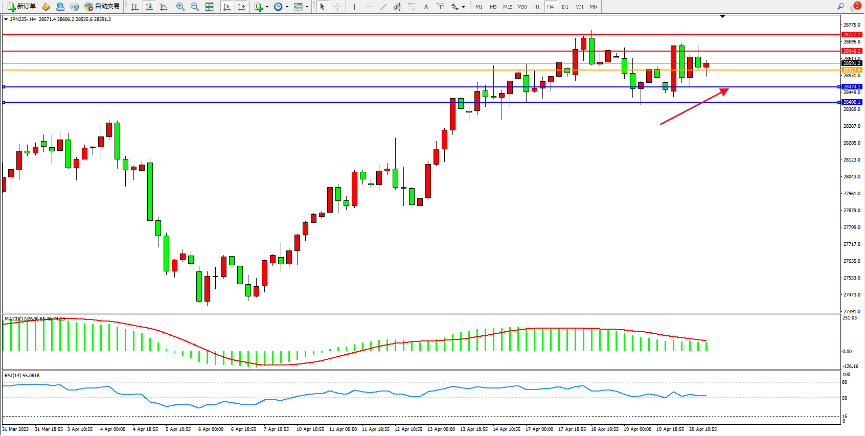 日经225指数4月20日(周四)收盘上涨32.74点,涨幅0.11%,报28639.50点。日本前财务大臣玉木林太郎:日本央行应该改变大规模刺激政策,即使这是痛苦的,但植田和男做出改变所需要的“动能”只会持续一年,如果日本央行要调整YCC,将需要一些意料之外的元素。