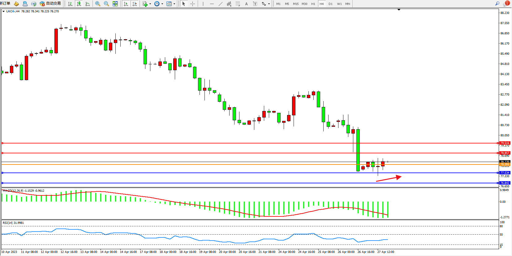 布油维持78.220附近震荡,油价隔夜下跌近4%,延续前一交易日的大幅跌幅,完全抹去OPEC+在本月初意外宣布加码减产后录得的全部涨势。