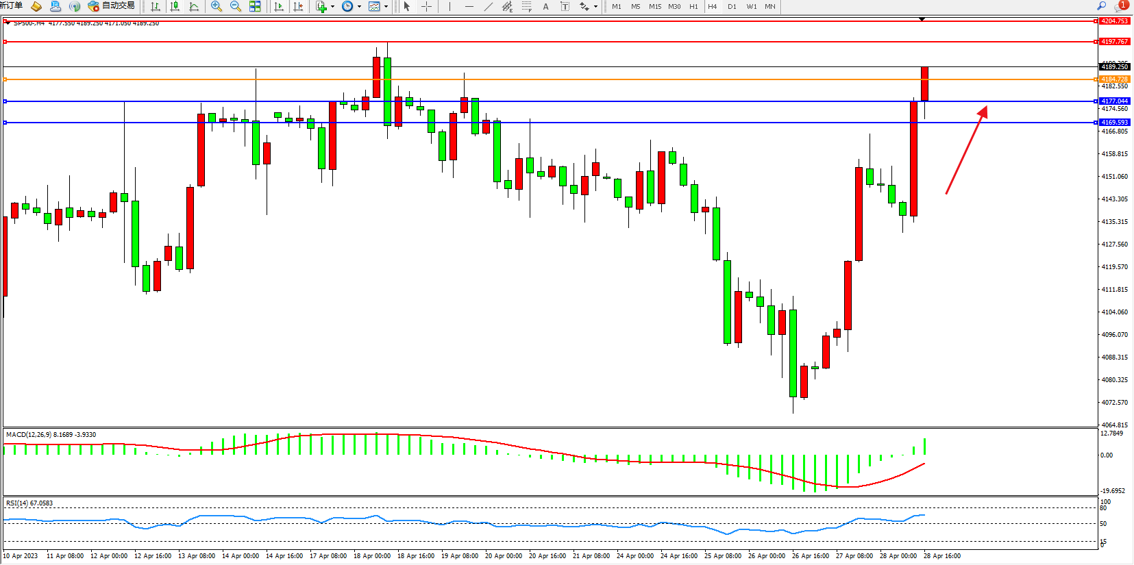 标普500指数4月28日(周五)收盘上涨34.85点,涨幅0.84%,报4170.20点;美国3月份通胀率上升,服务支出的增长被商品支出的下降所抵消,但核心通胀压力依然强劲,预计美联储下周会再次加息。