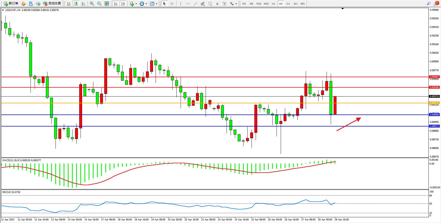 美元兑瑞郎维持0.89376附近震荡,瑞士4月KOF经济领先指标 96.4,预期98.1,前值98.2。