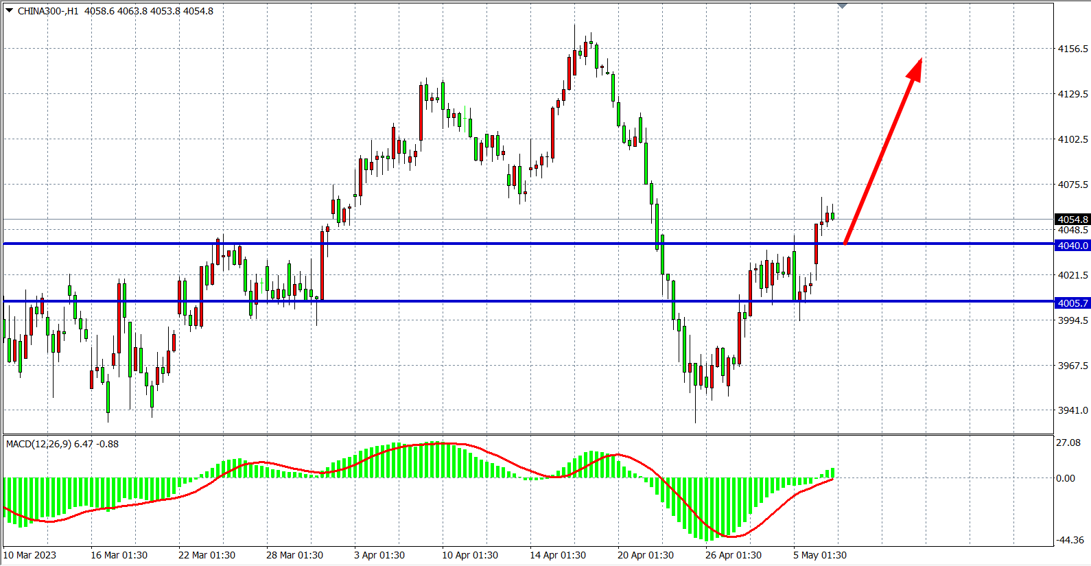 4小时图看,沪深300突破4040进一步走强,MACD量能在零轴上开始放量,趋势延续上行,当前支撑上移4040,上方目标看4100-4150。