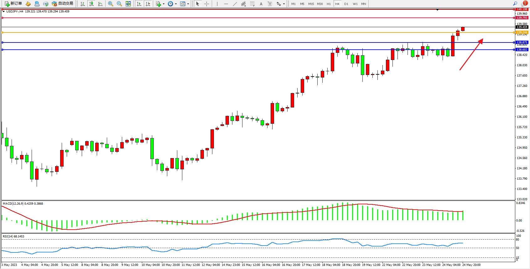 交易策略:139.244上方看涨,目标139.793 140.108