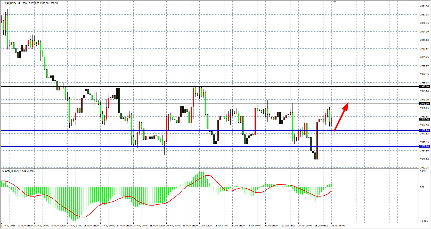 周五(6月16日)现货黄金小幅收涨0.02%,周累跌0.30%