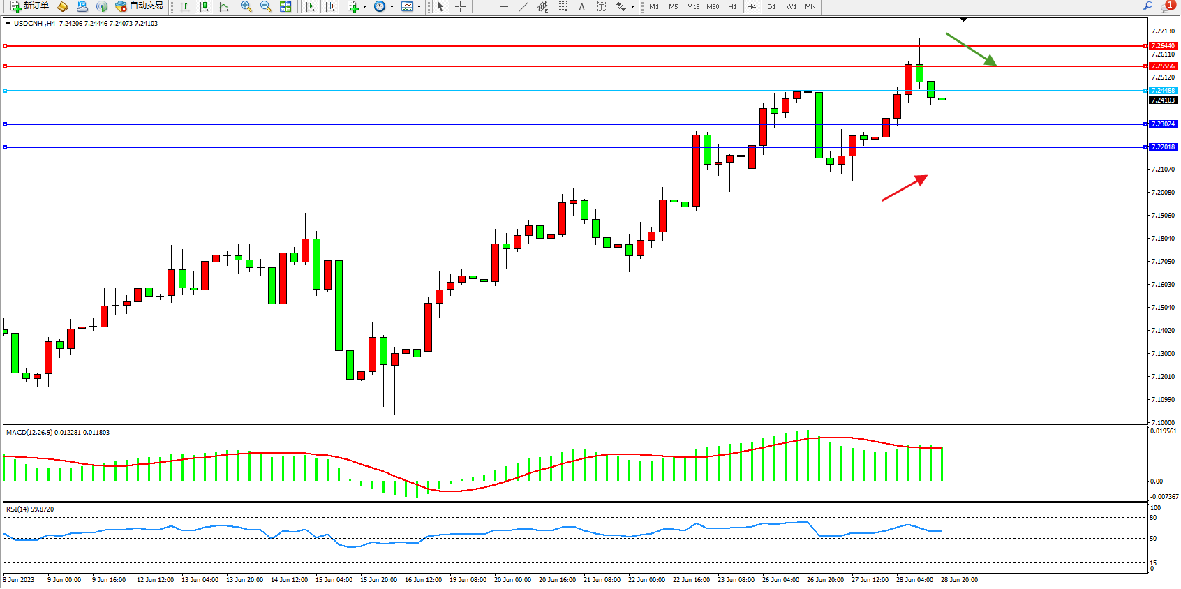 交易策略:7.24488下方看跌,目标7.23024  7.22018