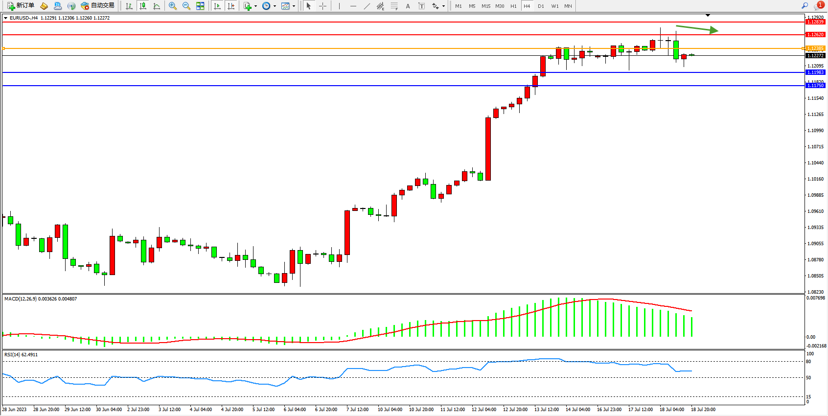 欧元兑美元维持1.12272附近震荡,欧元区经济活动在6月放缓后,欧洲央行9月进一步加息的前景尚不明朗。考虑到欧元区经济疲软以及9月暂停加息的风险,如果美联储下周加息时语气强硬,市场可能会重新评估欧元兑美元汇率。