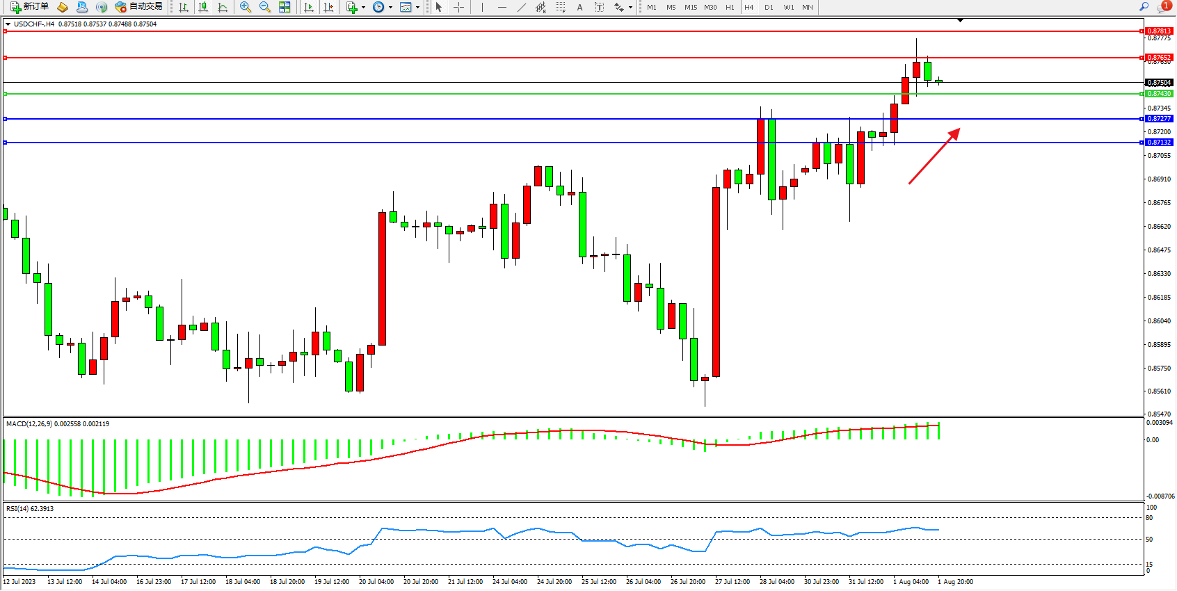 交易策略:0.87430上方看涨,目标0.87652 0.87813