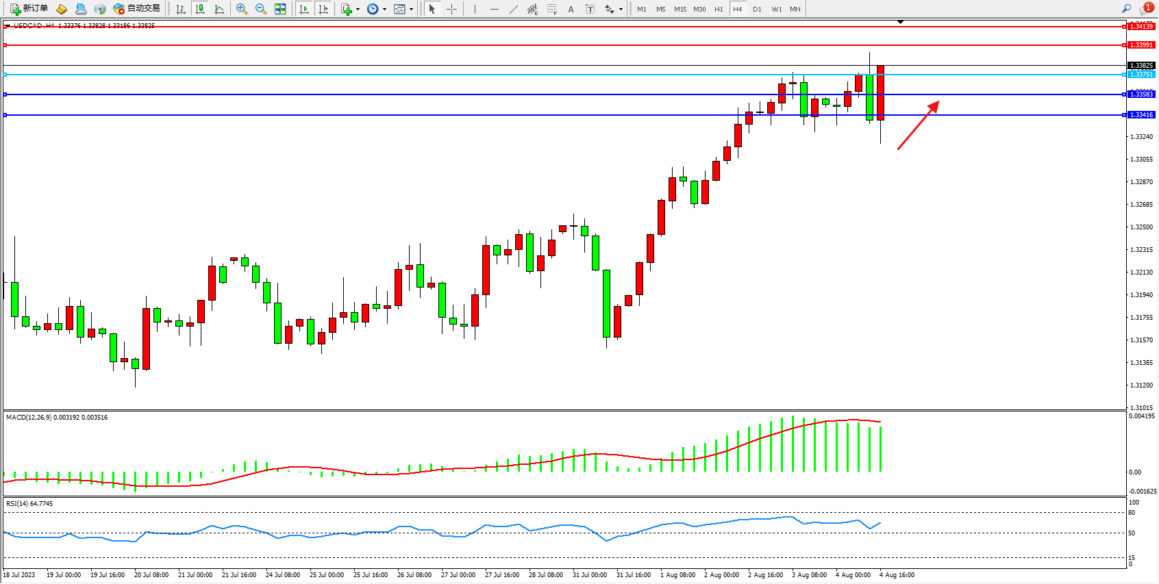 美元兑加元维持1.33825附近震荡,加拿大7月就业人数 -0.64万人,预期2.11万人,前值5.99万人。