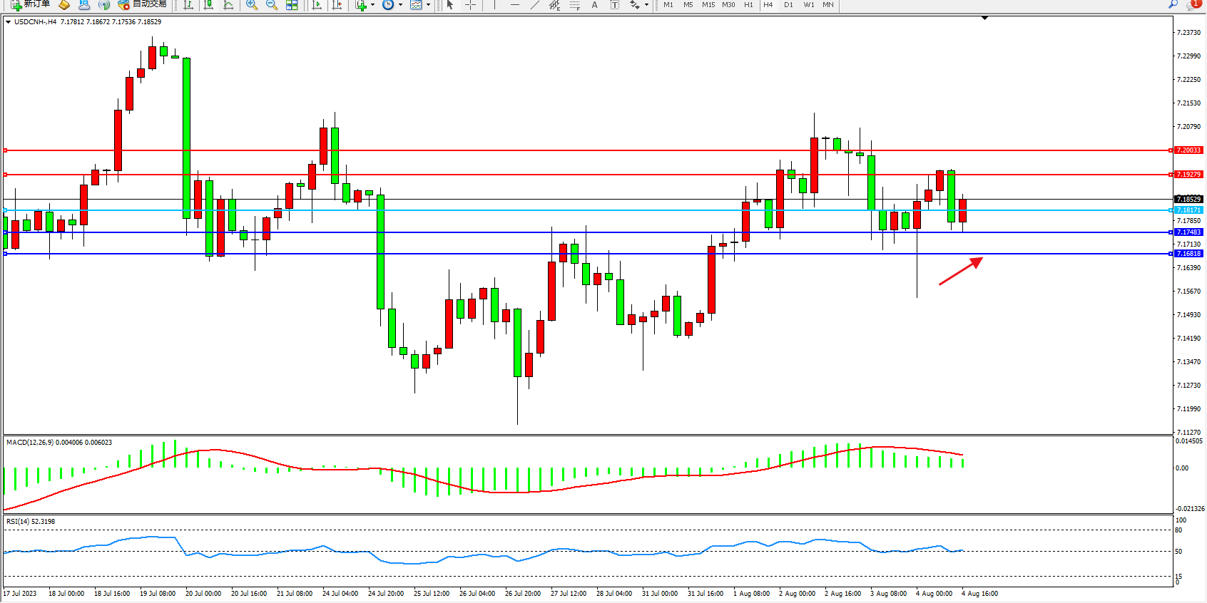 备选策略:1.18171下方看跌,目标7.17483 7.16818