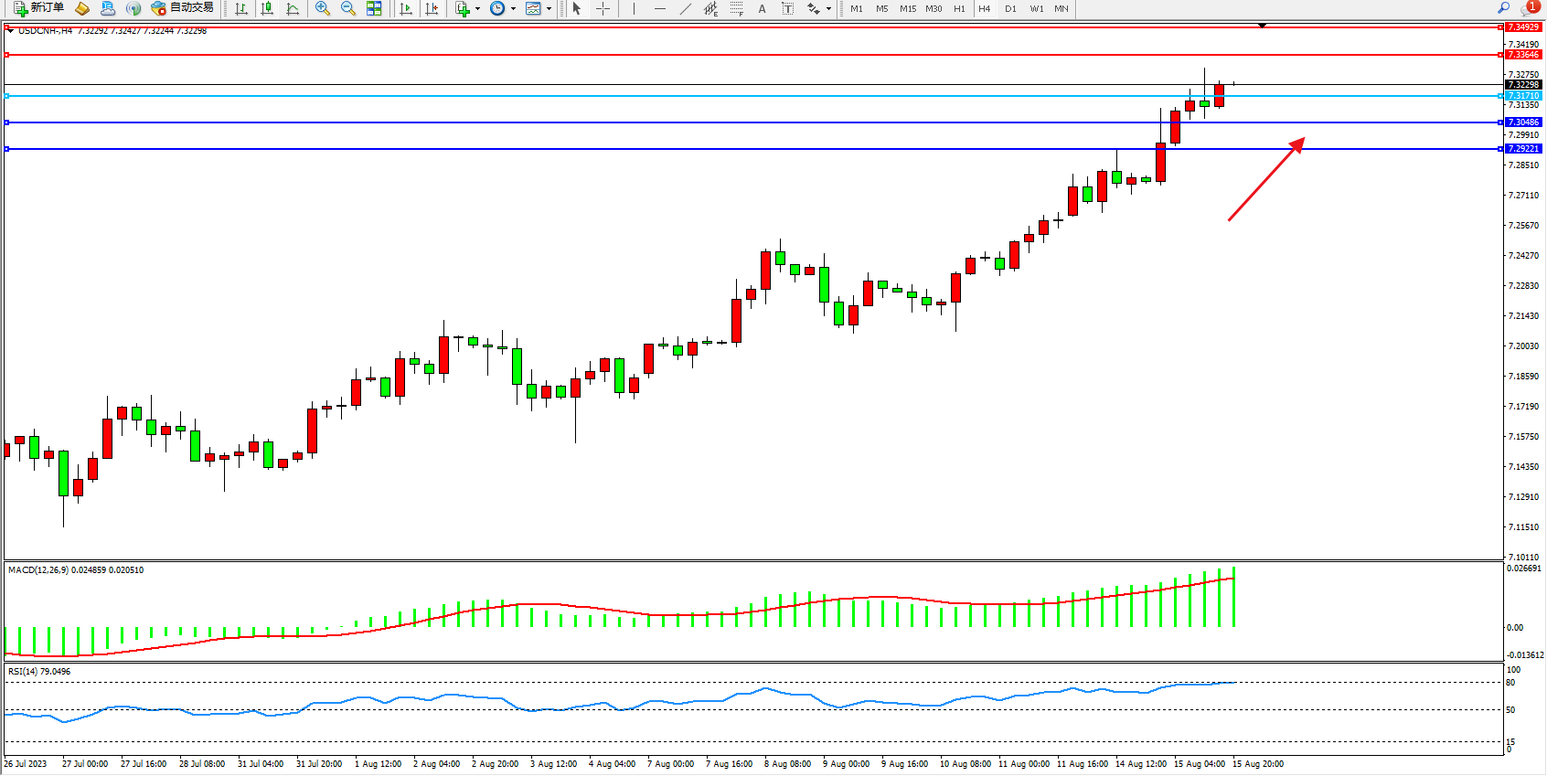 交易策略:7.31710上方看涨,目标7.33646 7.34929