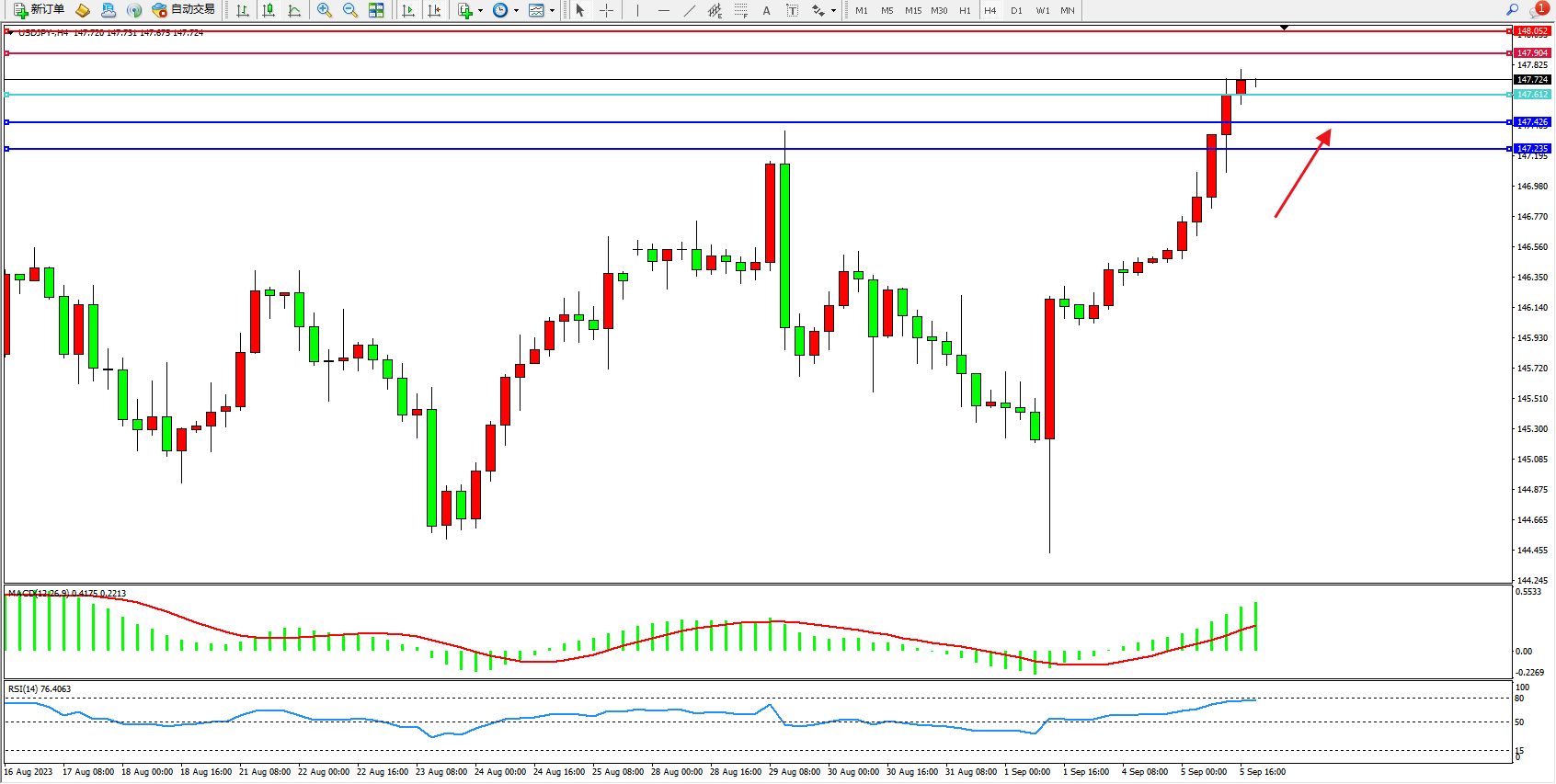 阻力位:147.904  148.052