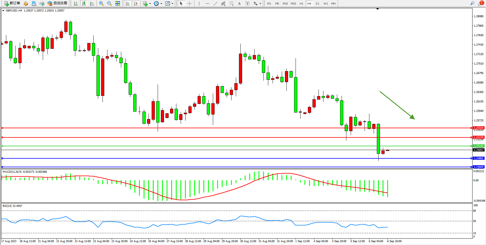 交易策略:1.25142下方看跌,目标1.24865  1.24669