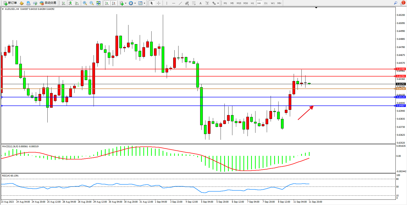 交易策略:0.64230上方看涨,目标0.64394 0.64488