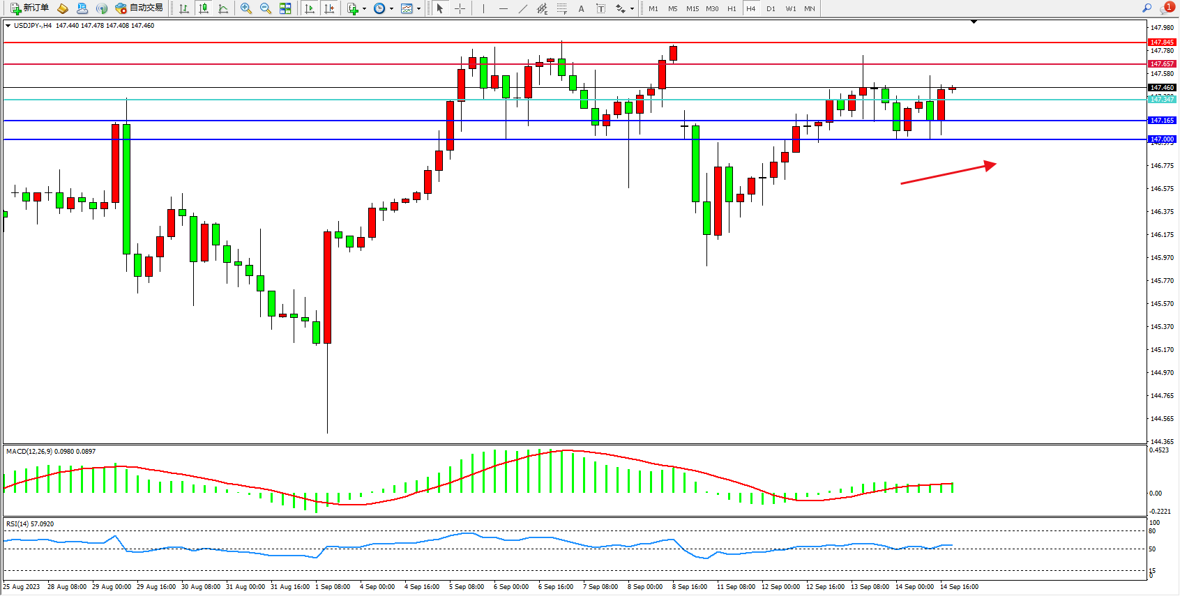 美元兑日圆维持147.460附近震荡,日本央行可能在10月加息。取消负利率的概率有50%,如果日本央行要取消负利率,时机将取决于政治层面的时间表。首相岸田文雄料将于10月召开国会特别会议,11月通过追加预算,然后在大选中解散国会。