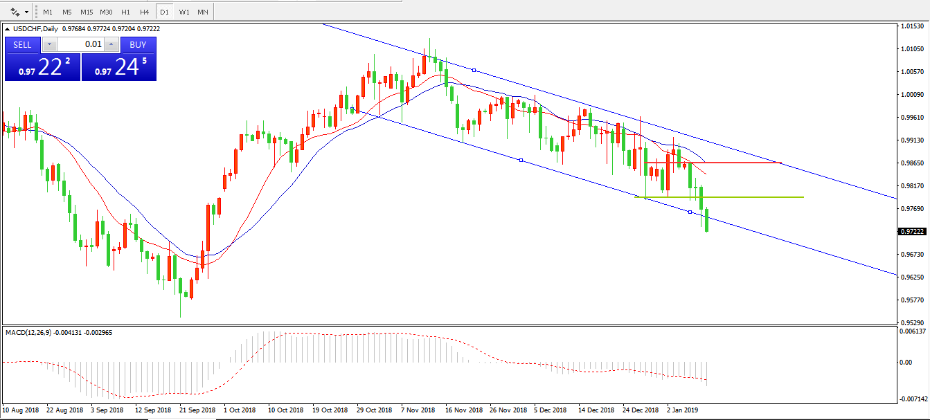 技术面简析: 均线延续死叉,MACD在0轴下方运行动能放量,汇价打破下降通道下轨,空头力量正盛,有进一步走低态势。