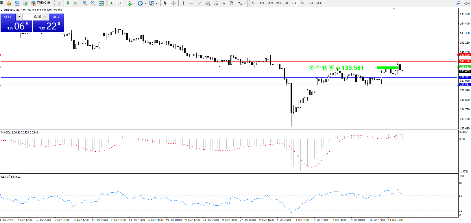 交易策略:139.561下方看跌,目标138.361137.551