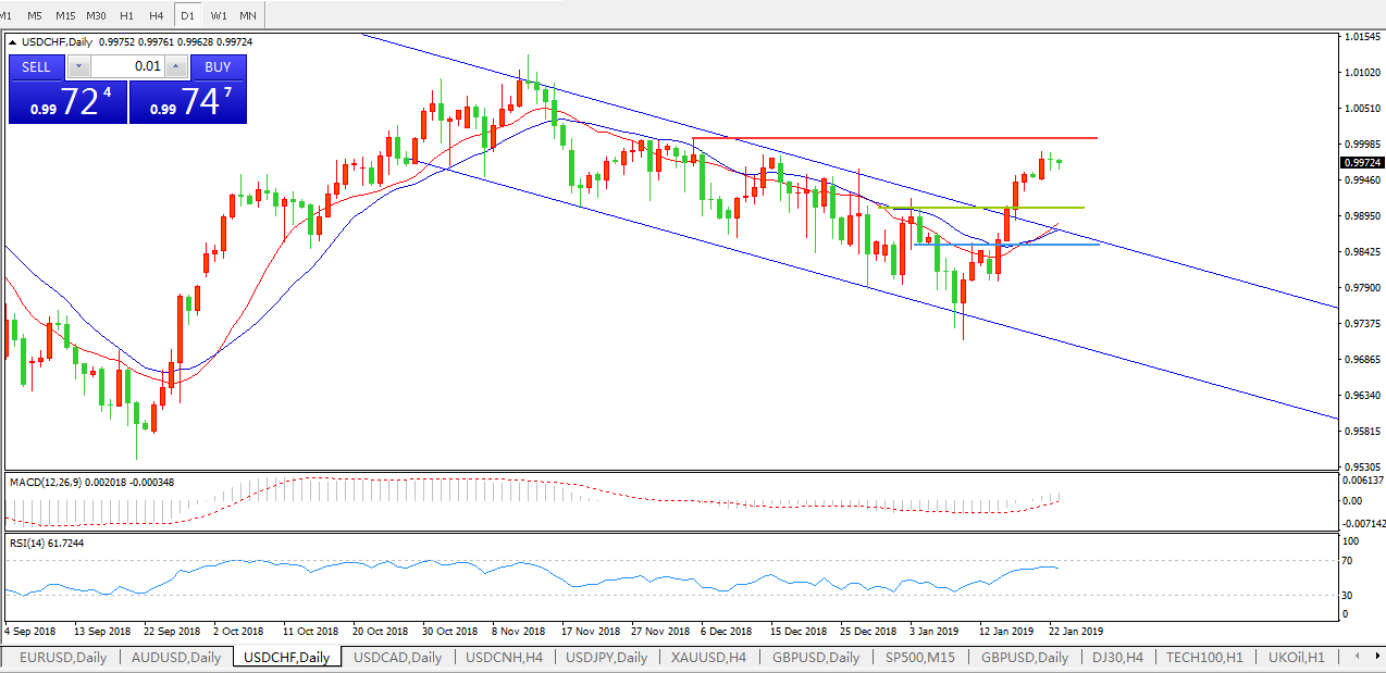 美元兑瑞郎USDCHF日线图
