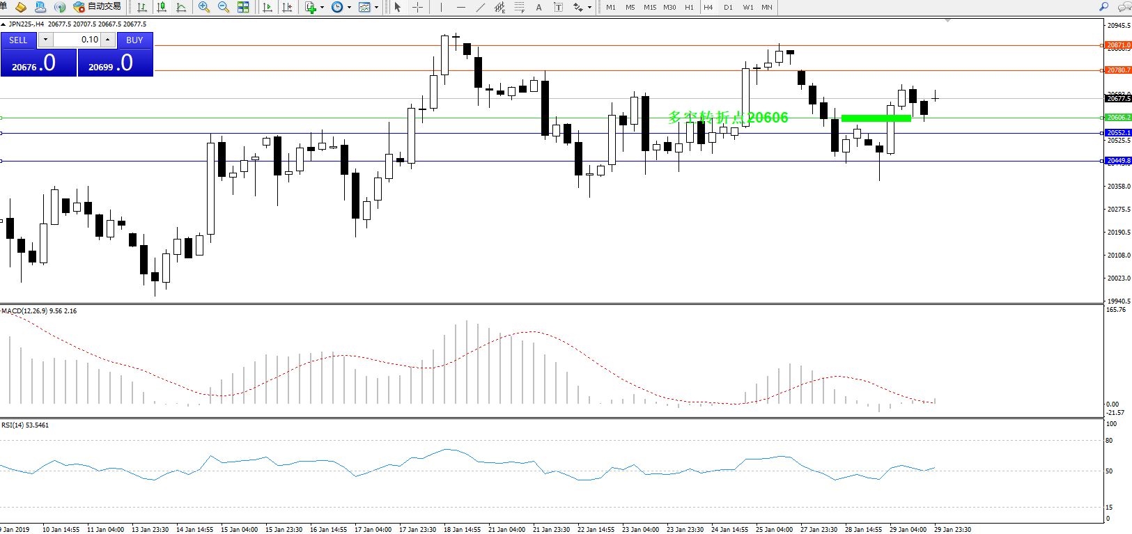 技术点评:持续宽幅横盘整理,MACD指标0轴附近来回震荡,RSI指标徘徊于50均衡线附近;