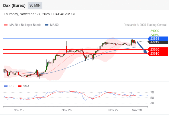 在 23868 之下,看跌,目标价位为 23680 ,然后为 23610 。