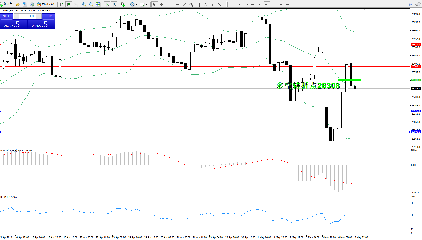 特朗普表示,目前价值2000亿美元的中国商品的10%关税将在周五上涨至25%。威胁要“在短期内”对另外3250亿美元的中国商品征收25%的税。中方表示将退出贸易谈判。市场情绪紧张,华尔街将开始大幅抛售。道琼斯工业平均指数收跌66.47点,跌幅0.25%,报26438.48点。