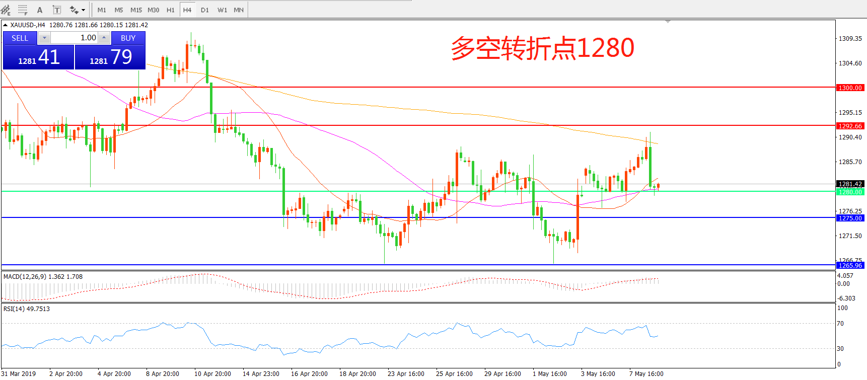 多空转折点:1280.00