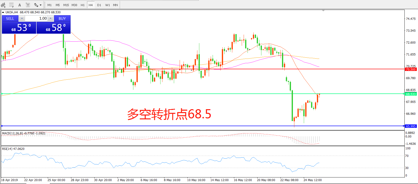 周一(5月27日),华盛顿方面上周五表示将委派更多军队至中东地区,这令美国和伊朗的紧张局势进一步加剧,中东的紧张局势以及石油输出国组织(OPEC)主导的减产推动油价反弹,布伦特原油货周一上涨0.67美元,报68.53美元/桶。