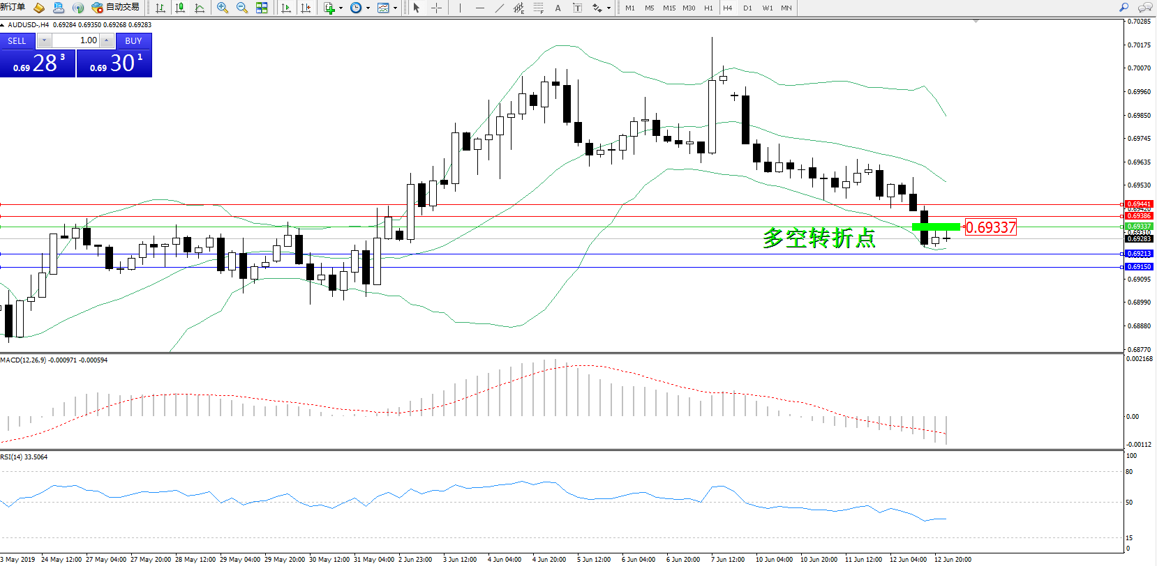 交易策略:0.69337下方看跌,目标0.69213、0.69150